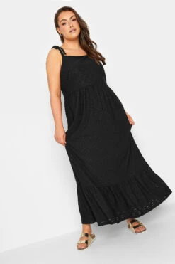 Ajoutez de la classe à vos looks d’été avec notre robe maxi noire broderie anglaise volantée. Féminine, légère et confortables, vous allez l’adorer.