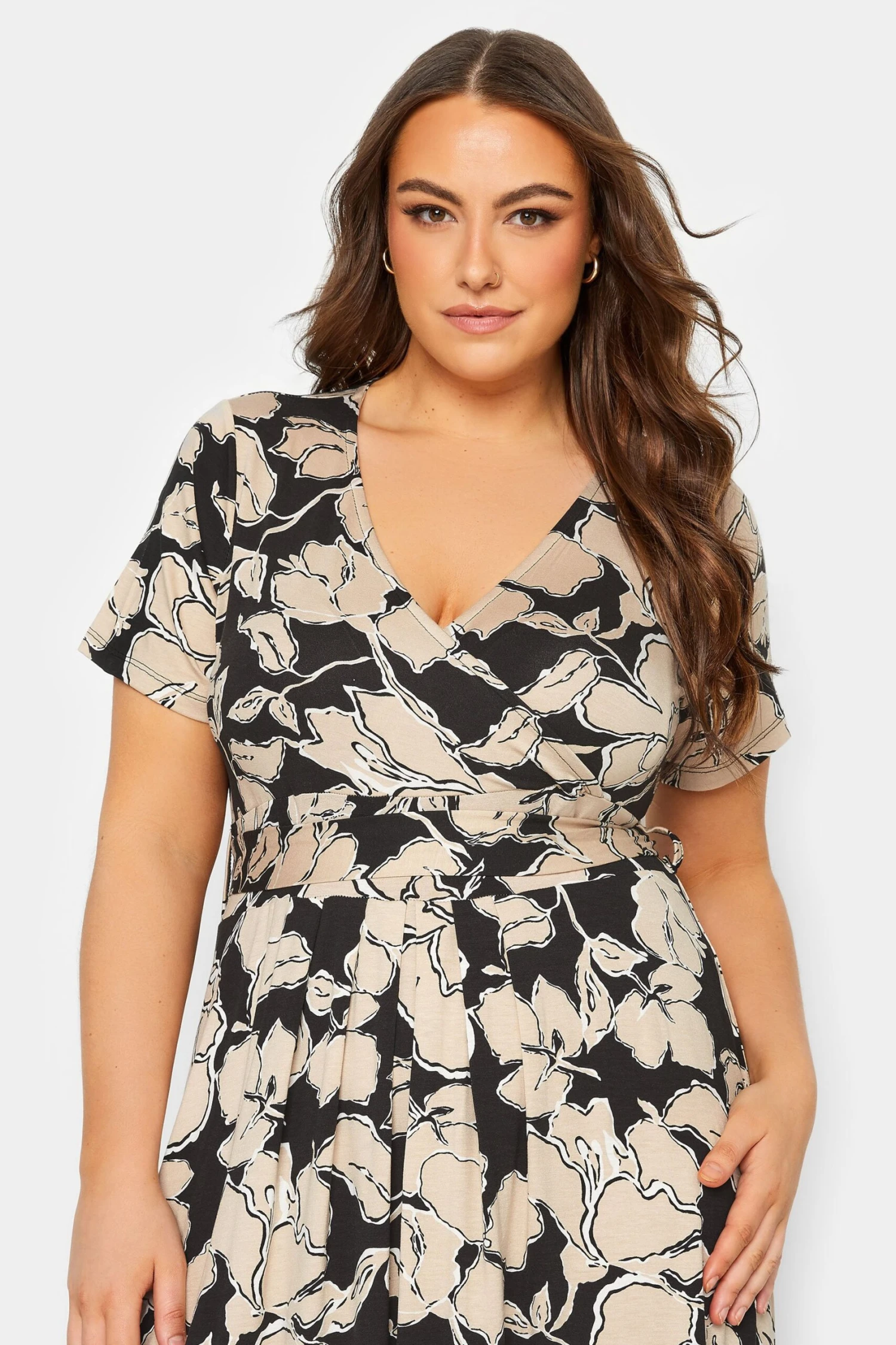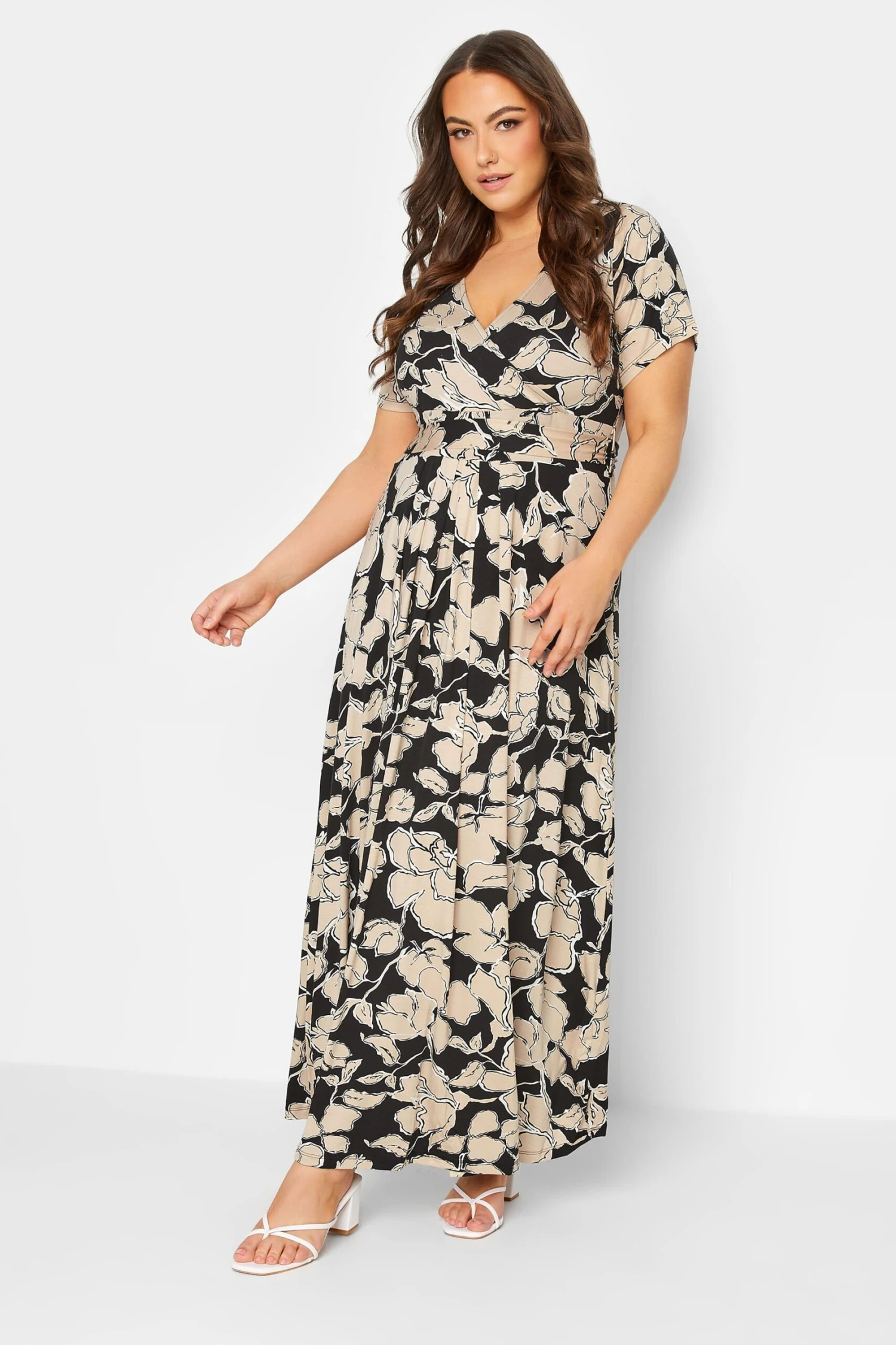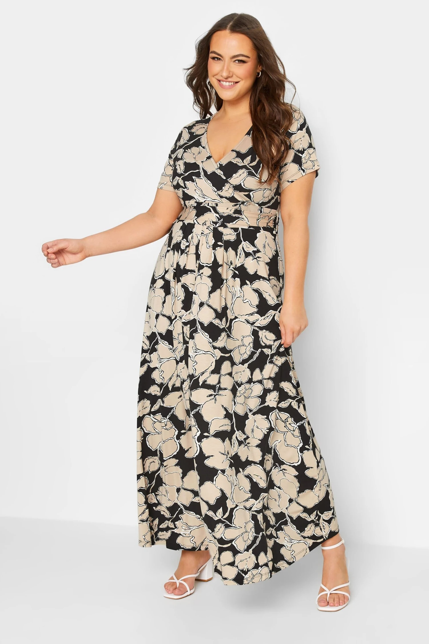 Craquez pour notre robe maxi noire et beige floral cache-coeur. Tendance et féminine, vous allez l’adorer.