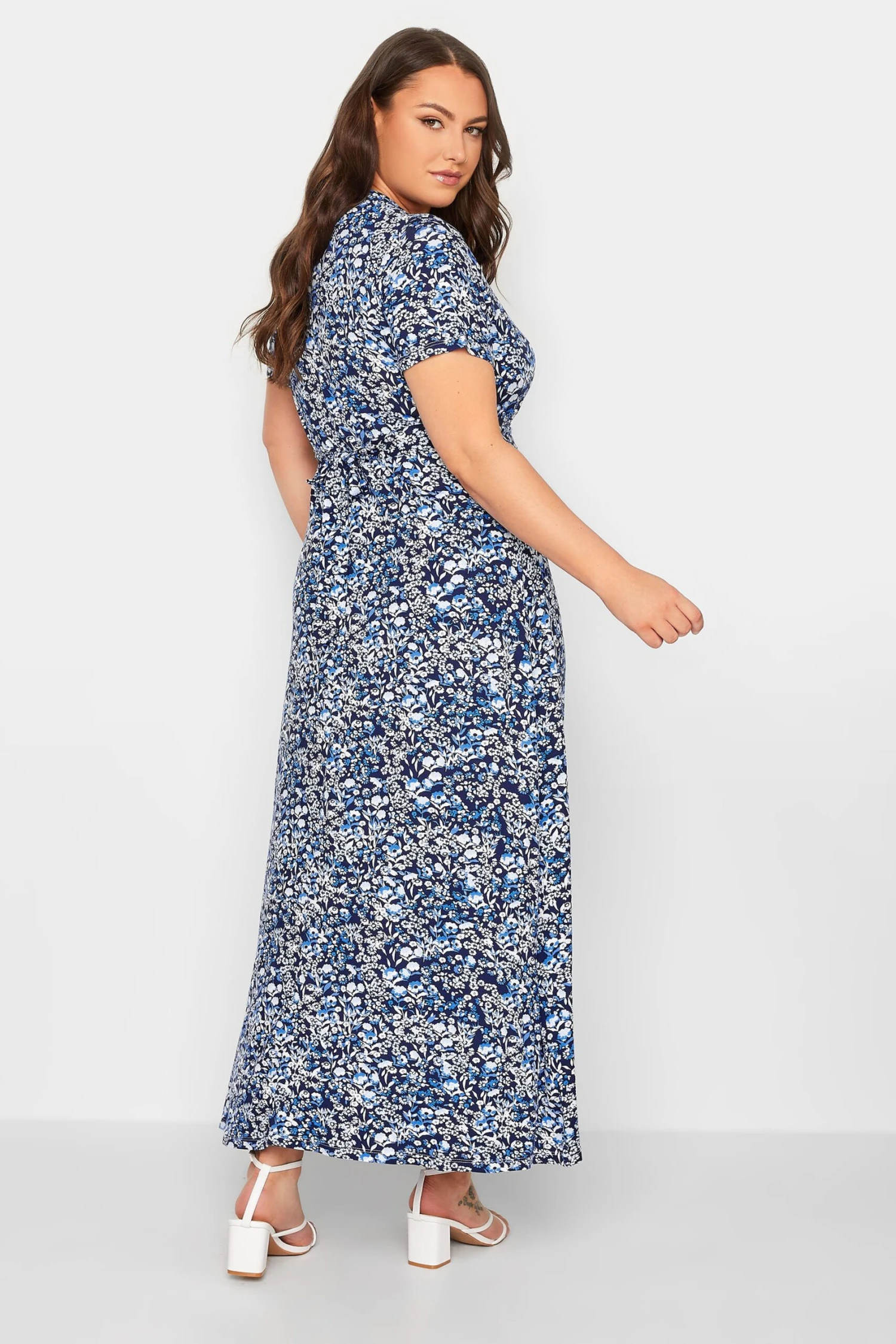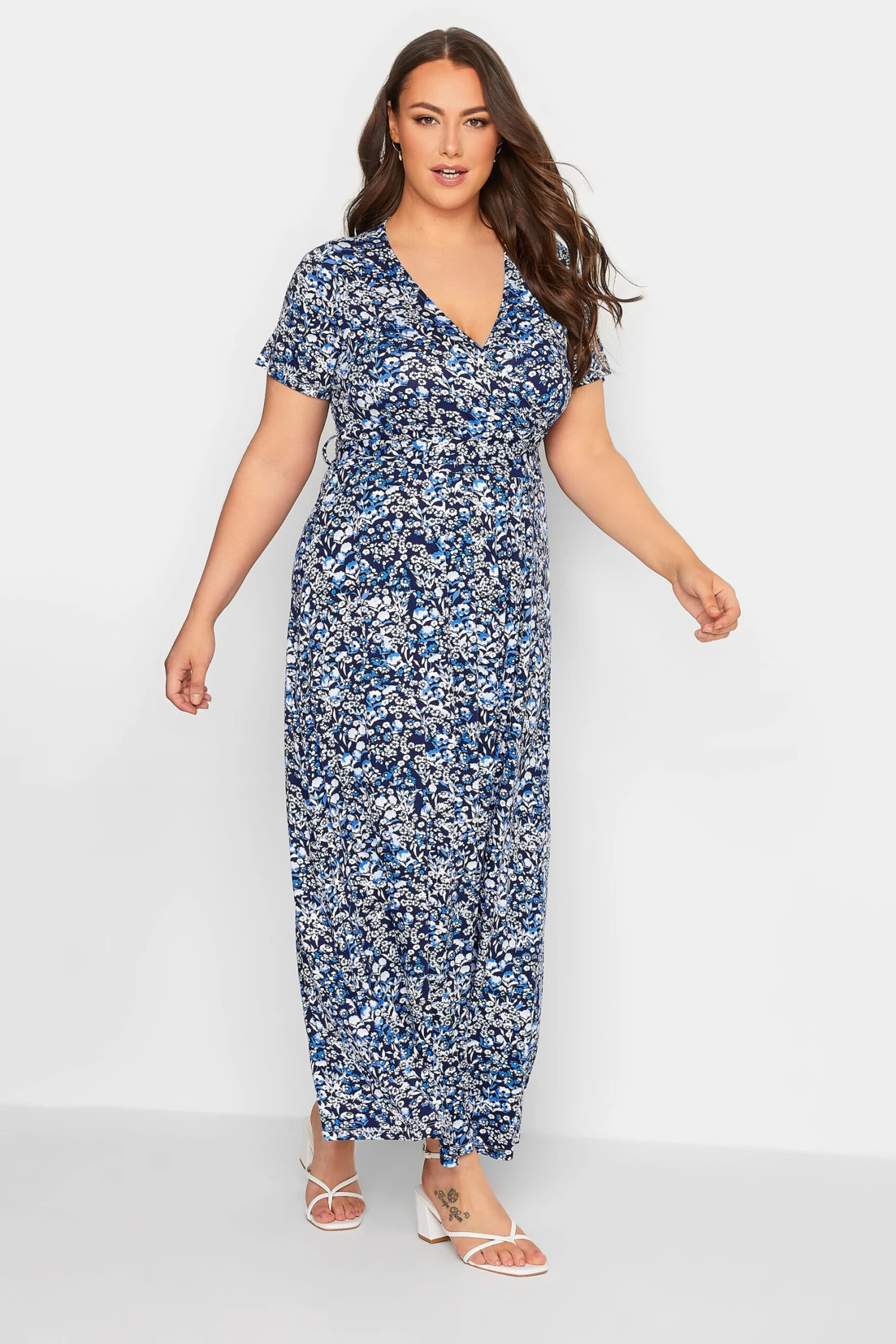 Craquez pour notre robe maxi noire et bleue marine floral cache-coeur. Féminine et tendance, vous allez l’adorer.