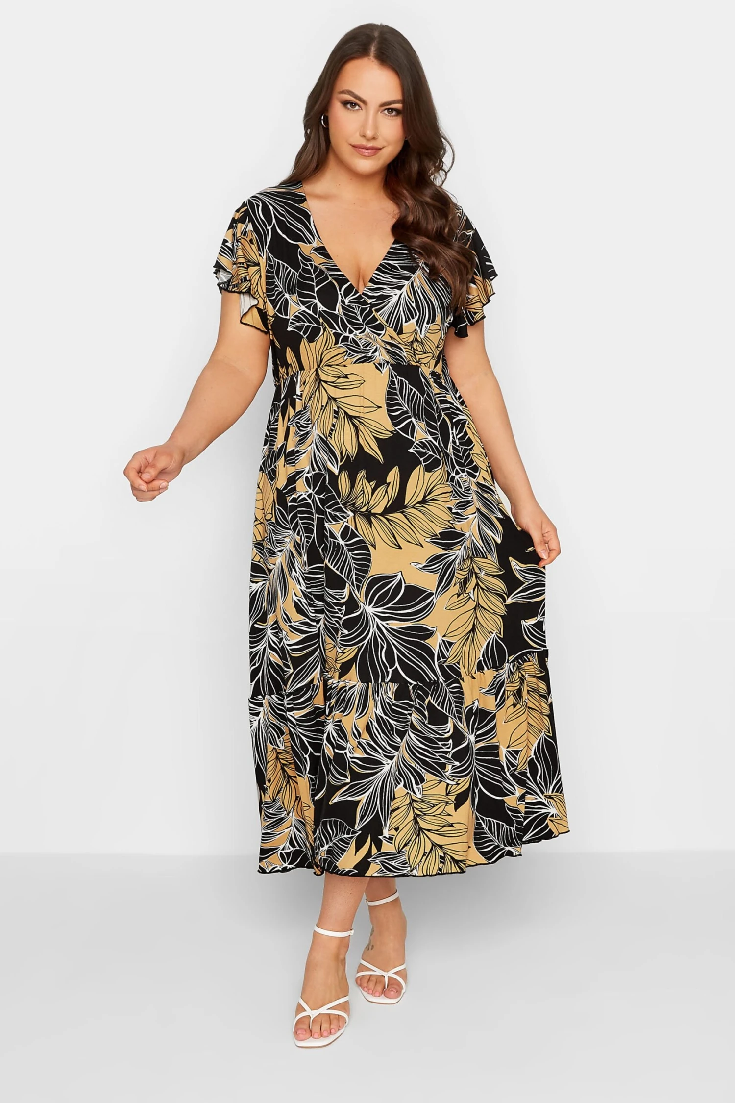 Craquez pour notre robe maxi noire et jaune cache-coeur feuilles manches volantées. Confortable et féminine, vous allez l’adorer cette saison.