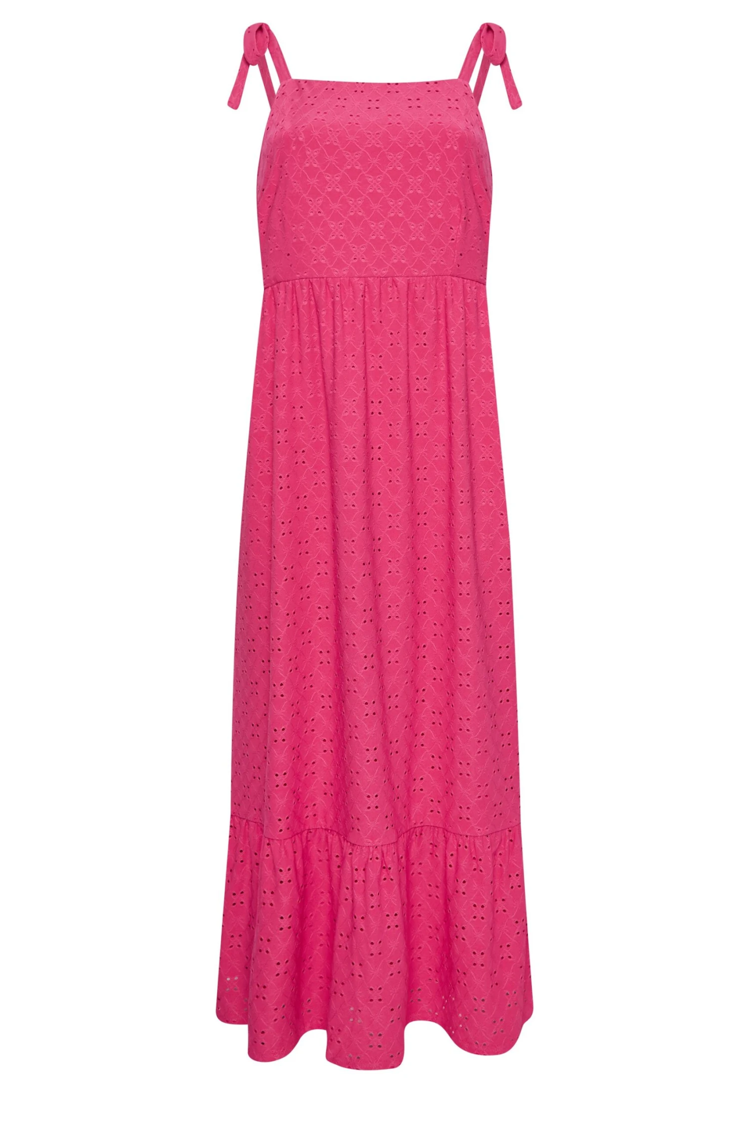 Ajoutez de la couleur à vos looks d’été avec notre robe maxi rose fushia broderie anglaise volantée. Féminine, légère et confortables, vous allez l’adorer.