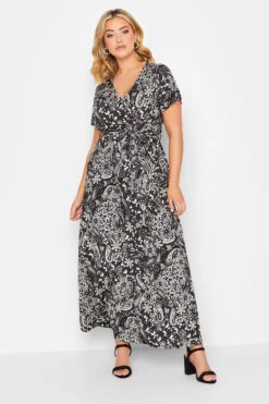 Craquez pour notre robe noire maxi cache-coeur imprimé paisley. Raffinée et légère, vous allez l’adorer ce printemps-été.