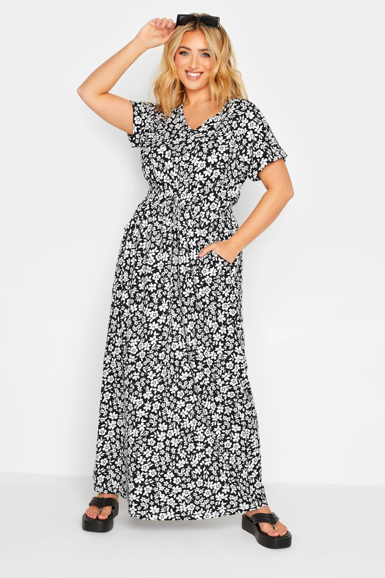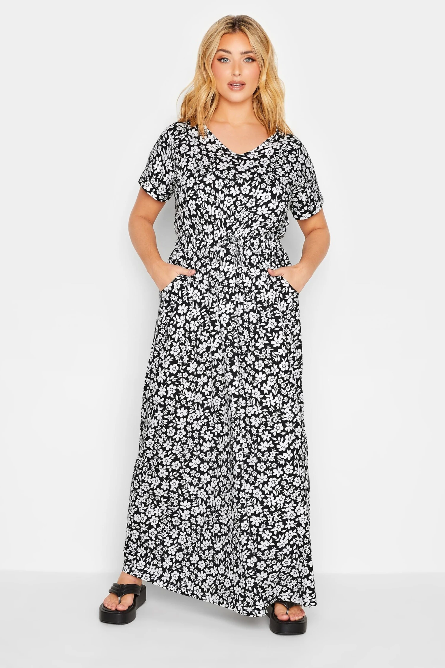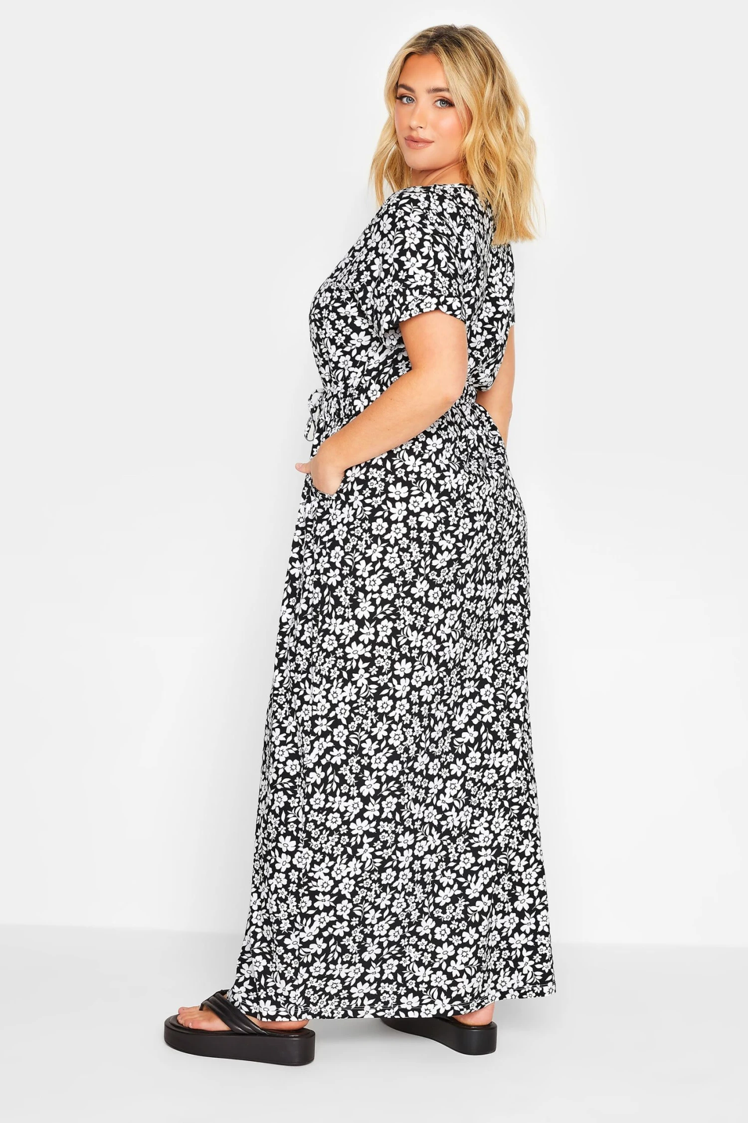 Craquez pour notre robe noire maxi manches courtes design floral. Tendance et confortable, vous allez adorer la porter cette saison pour vos différentes occasions.
