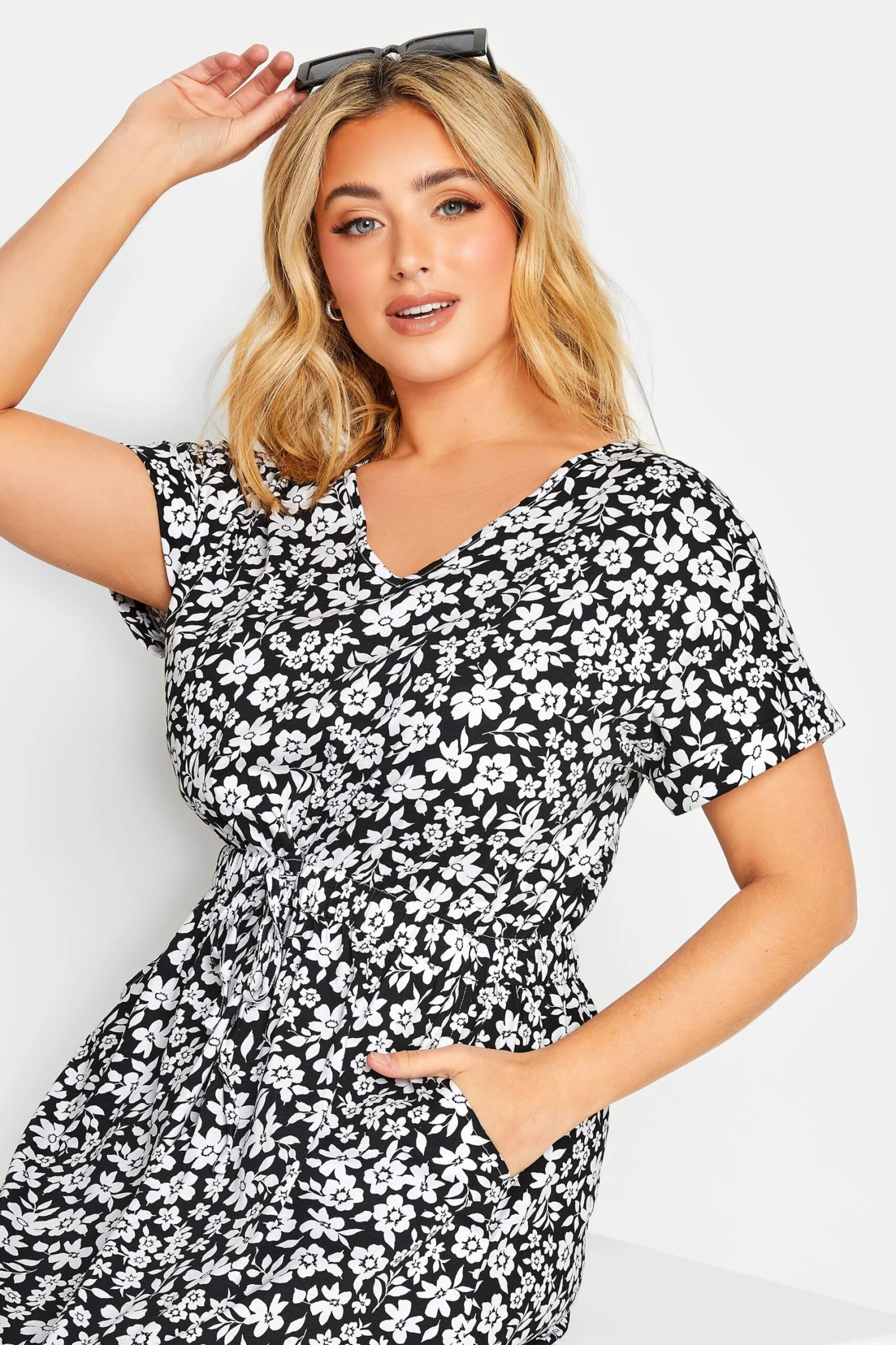 - Le mannequin mesure 5’8″/175 cm et porte du UK 16/EU 44