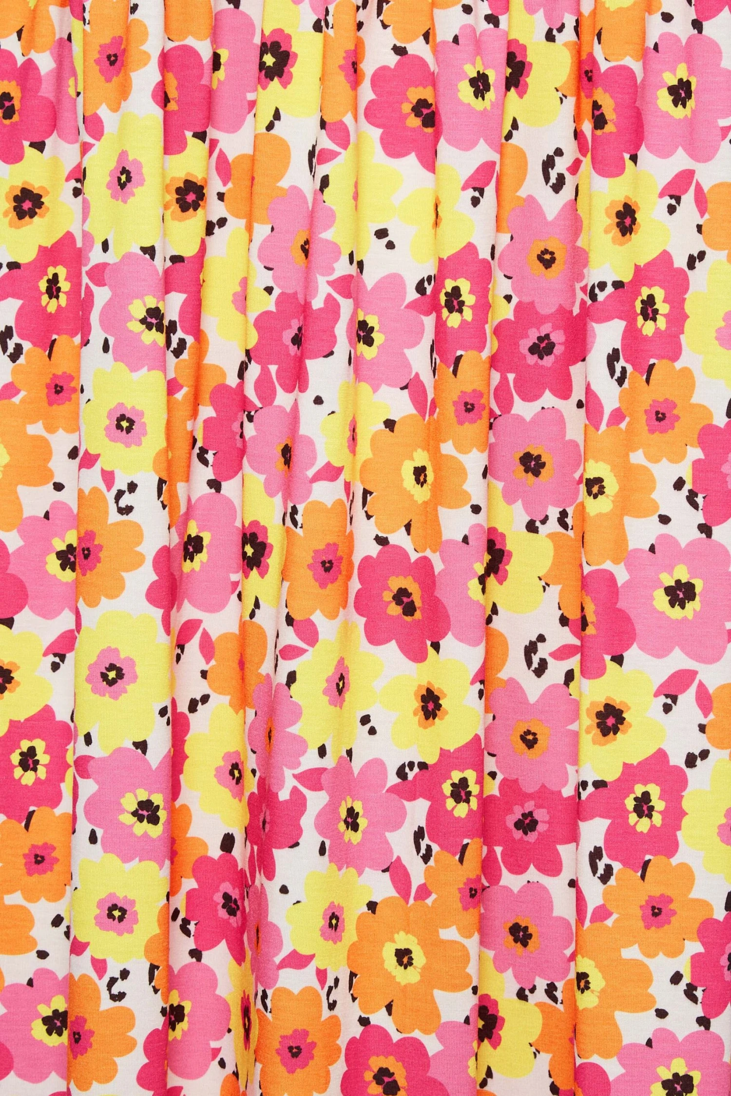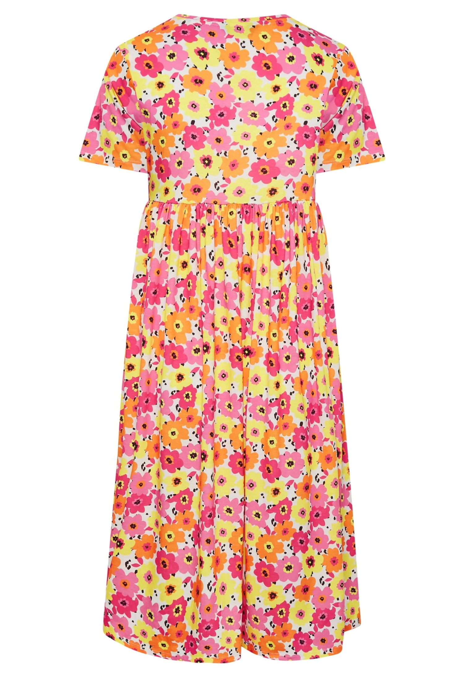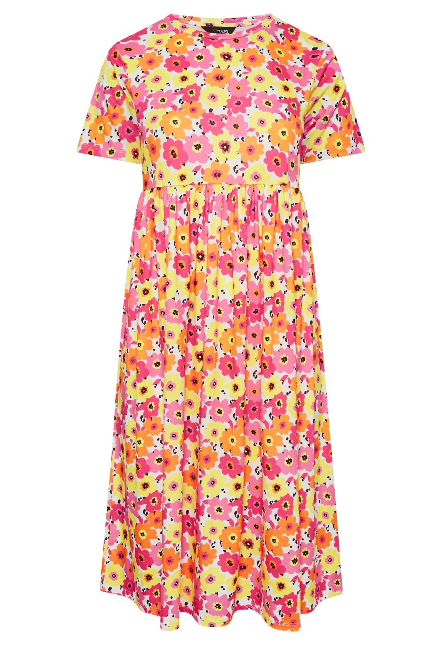 Ajoutez une touche de couleur à votre garde-robe de saison avec notre rose rose et jaune floral smocké manches courtes.